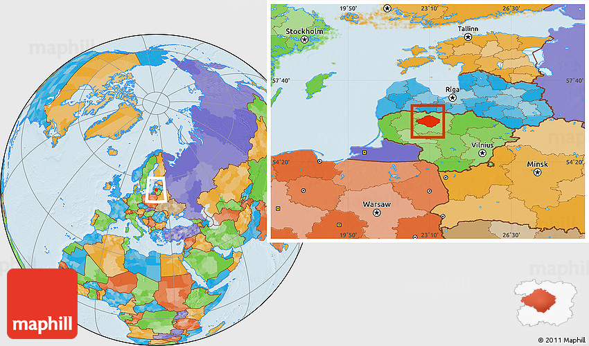 Maphill is a collection of map images. This image combines a political map with the globe centered on Siauliu. Use the buttons under the image to switch to different map types.