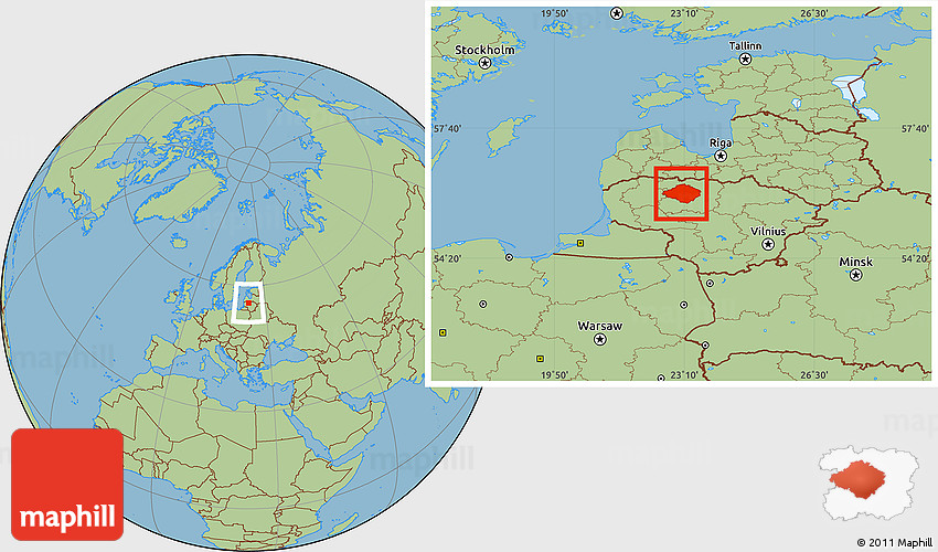 Maphill is a collection of map images. This image combines a savanna style map with the globe centered on Siauliu. Use the buttons under the image to switch to different map types.