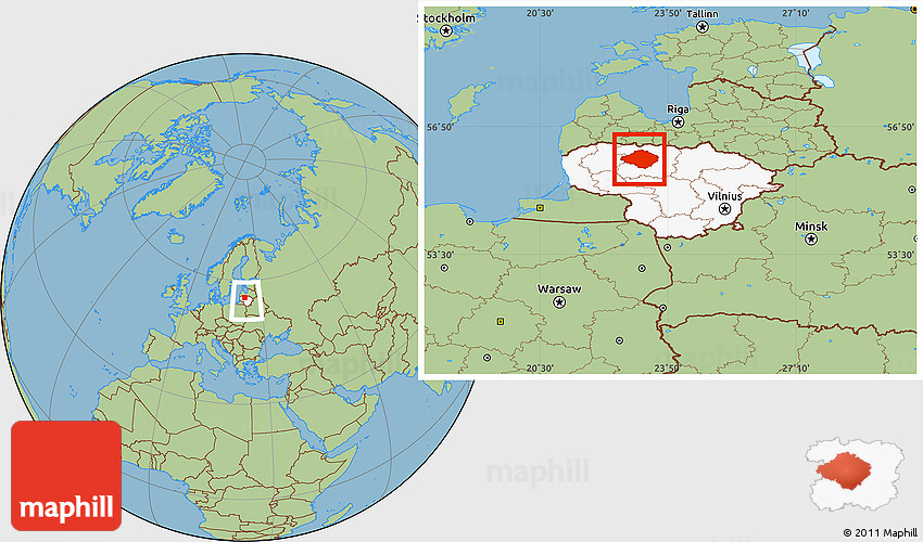 Maphill is a collection of map images. This image combines a savanna style map with the globe centered on Siauliu. Use the buttons under the image to switch to different map types.
