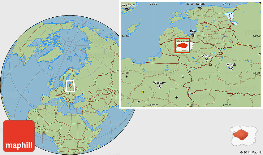 Maphill is a collection of map images. This image combines a savanna style map with the globe centered on Siauliu. Use the buttons under the image to switch to different map types.