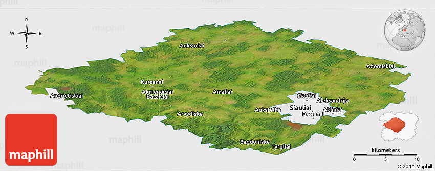 Maphill is a collection of map images. This perspective view of Siauliu at an angle of 30° is one of these images. Use the Detailed button under the image to switch to a detailed map.