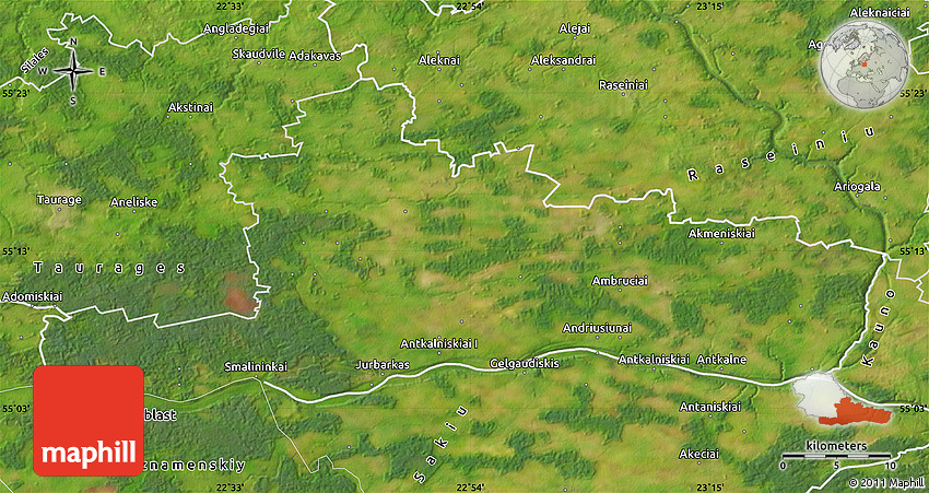 Maphill is a collection of map images. This satellite map of Jurbarko is one of them. Click on the Detailed button under the image to switch to a more detailed map.