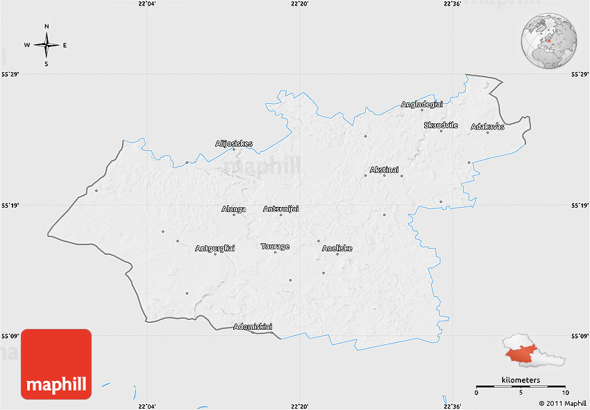 Maphill is a collection of map images. This silver style map of Taurages is one of them. Click on the Detailed button under the image to switch to a more detailed map.