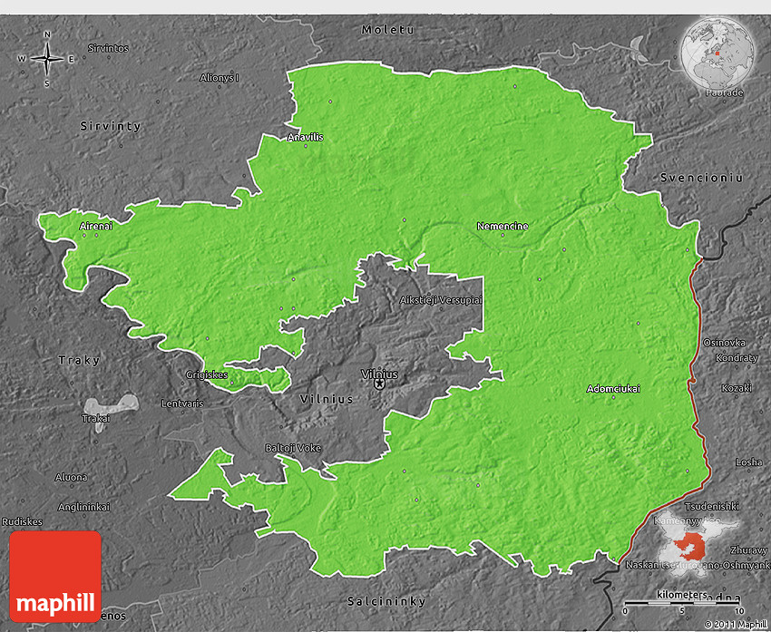 The value of Maphill lies in the possibility to look at the same area from several perspectives. Maphill presents the map of Vilniaus in a wide variety of map types and styles.