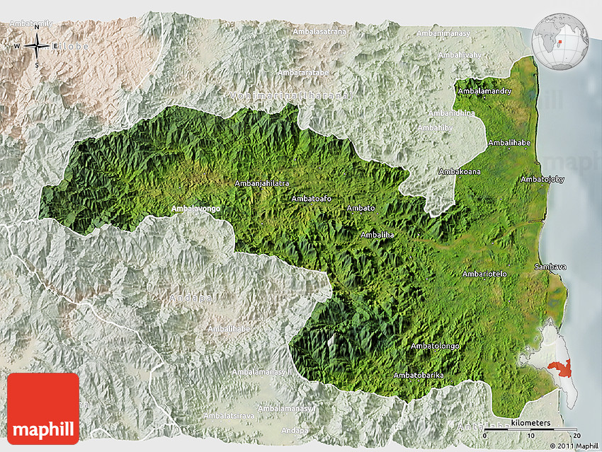The 3D satellite map represents one of several map types and styles available. Look at Sambava, Antsiranana, Madagascar from different perspectives.
