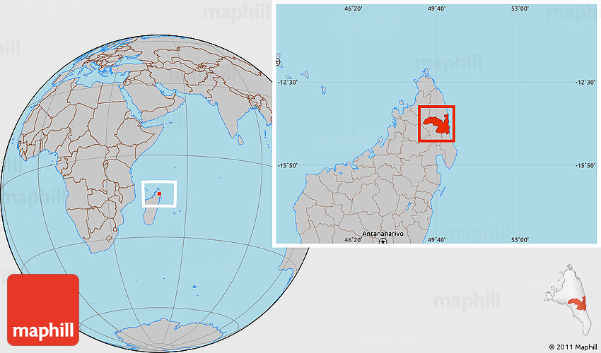 Maphill is a collection of map images. This image combines a gray map with the globe centered on Sambava. Use the buttons under the image to switch to different map types.