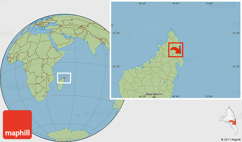 Maphill is a collection of map images. This image combines a savanna style map with the globe centered on Sambava. Use the buttons under the image to switch to different map types.