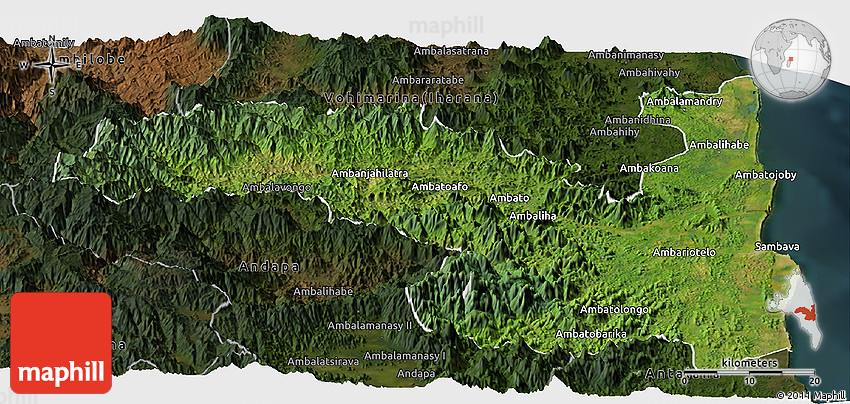 The value of Maphill lies in the possibility to look at the same area from several perspectives. Maphill presents the map of Sambava in a wide variety of map types and styles.