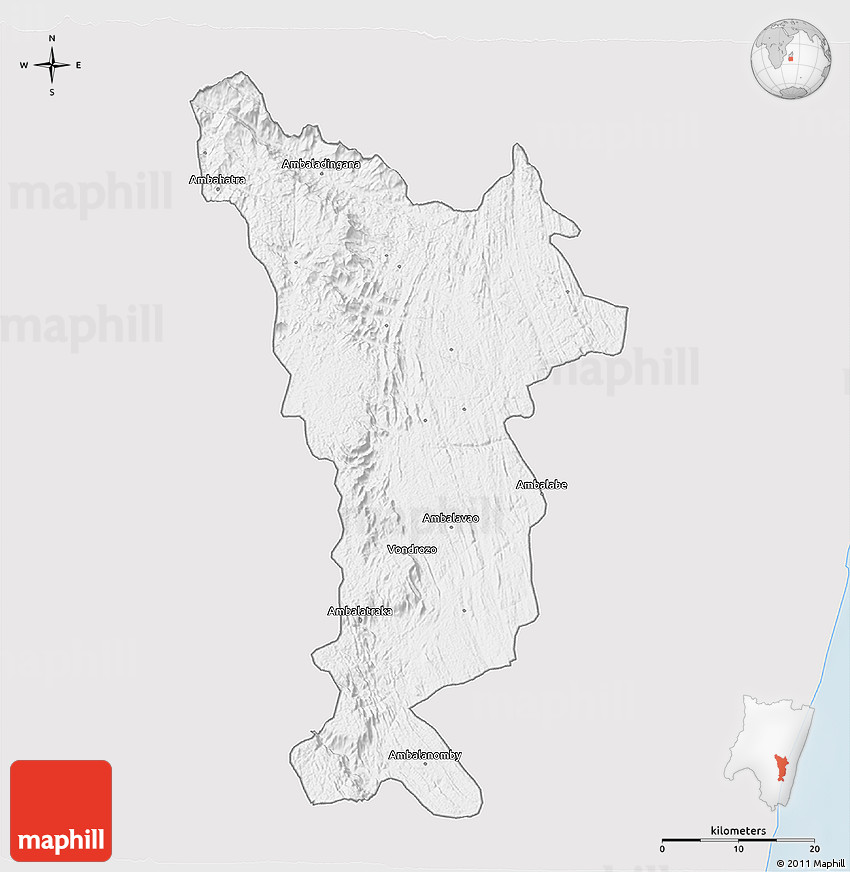 Each map type offers different information and each map style is designed for a different purpose. Read about the styles and map projection used in the above map (Silver Style 3D Map of Vondrozo, single color outside).