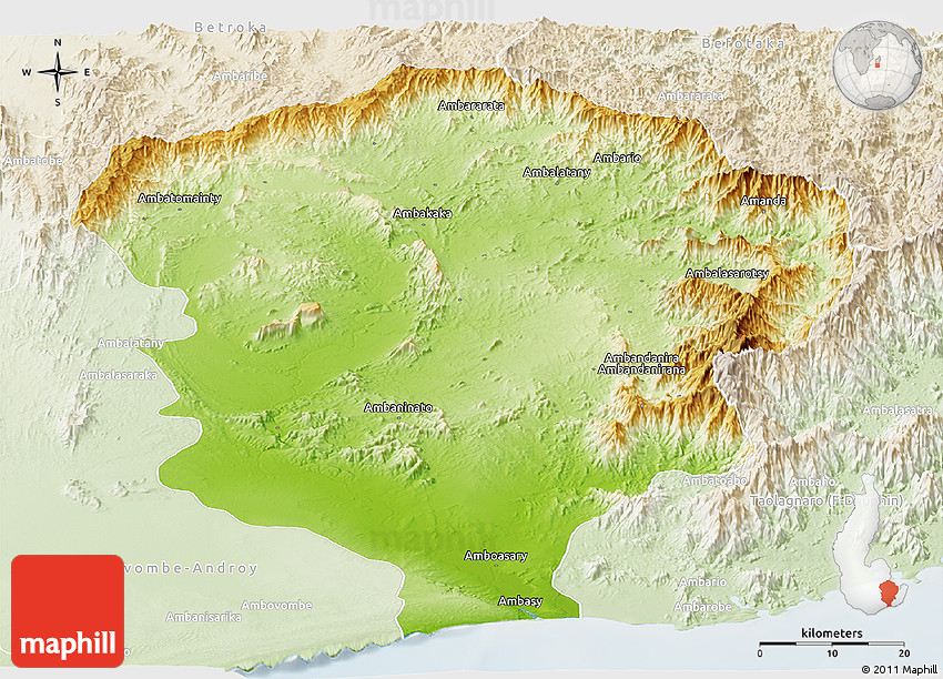 The panoramic physical map represents one of several map types and styles available. Look at Amboasary-Sud, Toliary, Madagascar from different perspectives.
