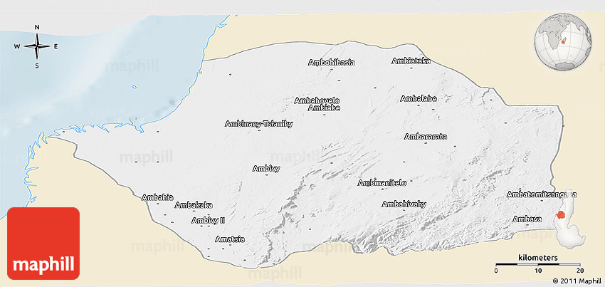 The panoramic classic style map represents one of several map types and styles available. Look at Manja, Toliary, Madagascar from different perspectives.