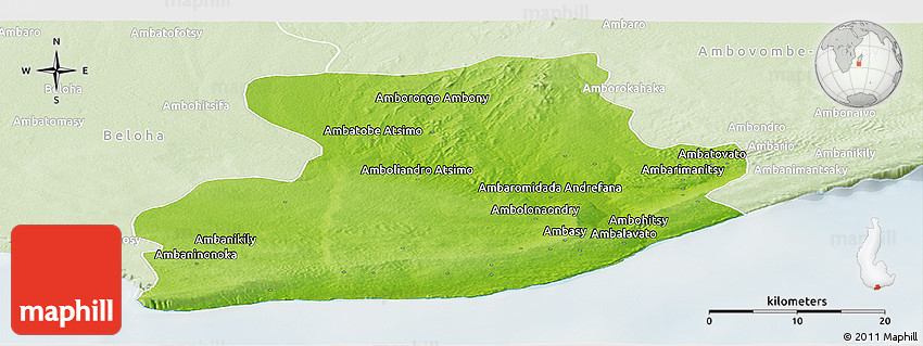 The panoramic physical map represents one of several map types and styles available. Look at Tsihombe, Toliary, Madagascar from different perspectives.