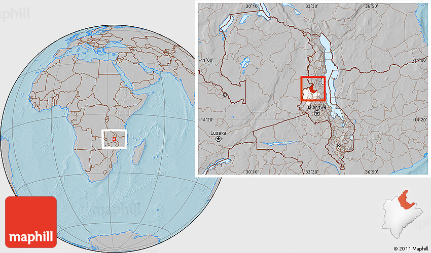 Maphill is a collection of map images. This image combines a gray map with the globe centered on Kaluluma. Use the buttons under the image to switch to different map types.