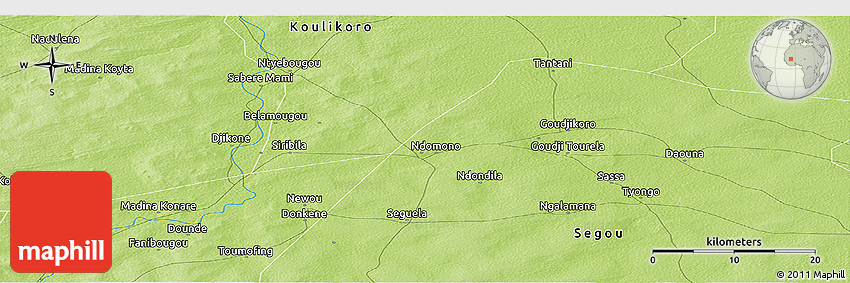 The panoramic physical map represents one of many map types and styles available. Look at Toumofing, Sebete, Banamba, Koulikoro, Mali from different perspectives.