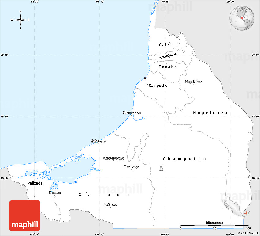 Embed the above silver style simple map of Campeche into your website. Enrich your blog with quality map graphics. Make the web a more beautiful place.