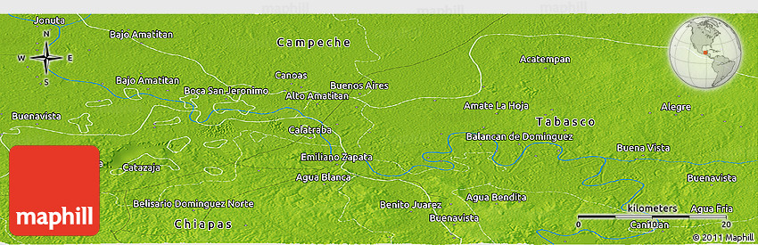 The panoramic physical map represents one of many map types and styles available. Look at Santa Lucía, La Libertad, Chiapas, Mexico from different perspectives.