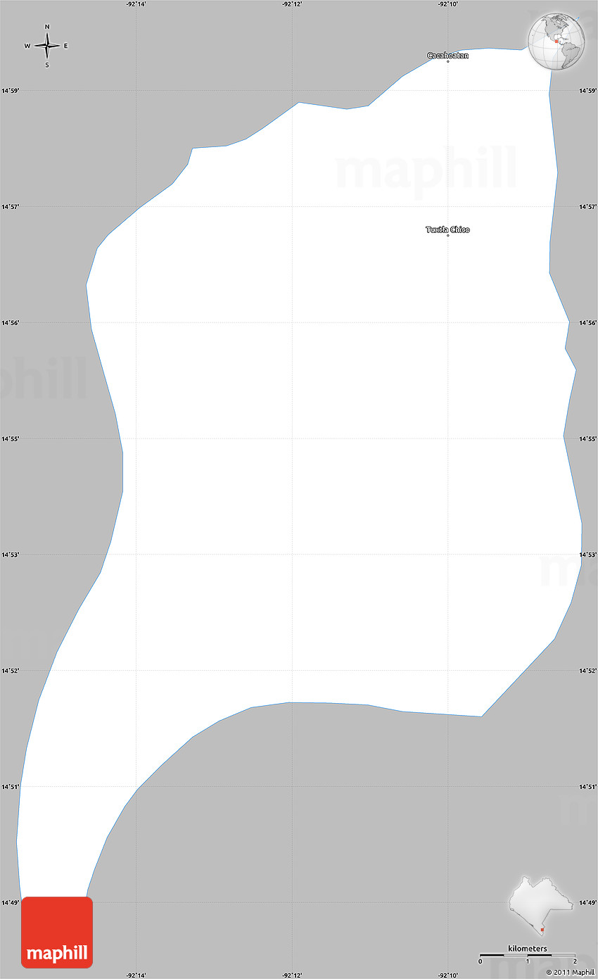 The grey colored map. Tuxtla Chico is highlighted in white. This color scheme is similar to silver styled maps, but compared to the latter, a darker shade of gray is used.