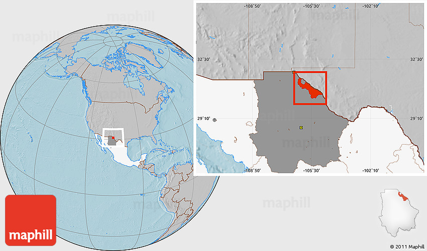 The gray location map represents one of several map types and styles available. Look at Guadalupe, Chihuahua, Mexico from different perspectives.