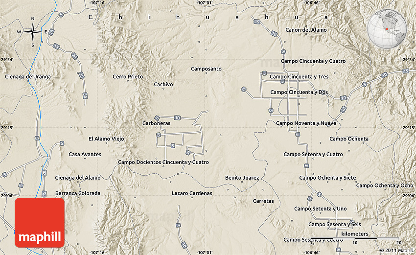 Sure, this shaded relief map is nice. But there is good chance you will like other map styles even more. Select another style in the above table. See Carboneras and Chihuahua from a different view.