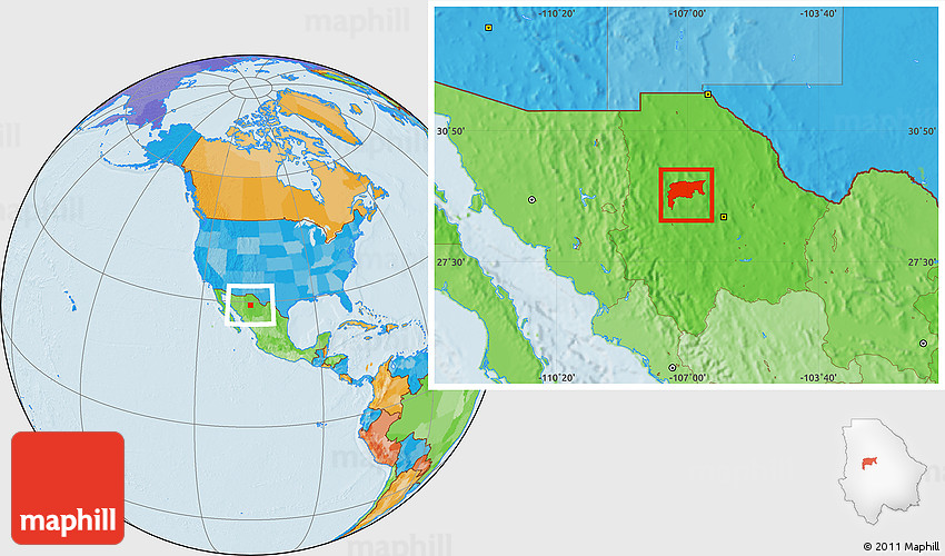 Maphill is a collection of map images. This image combines a political map with the globe centered on Namiquipa. Use the buttons under the image to switch to different map types.