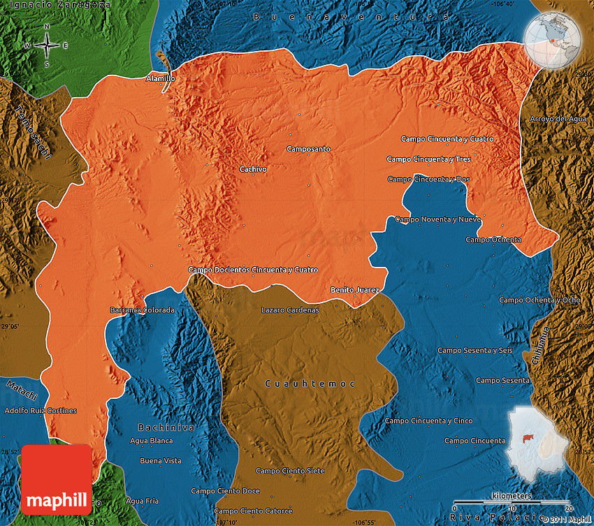 Maphill is a collection of map images. This political map of Namiquipa is one of them. Click on the Detailed button under the image to switch to a more detailed map.