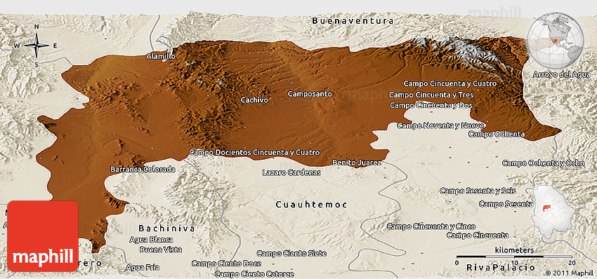 The panoramic physical map represents one of several map types and styles available. Look at Namiquipa, Chihuahua, Mexico from different perspectives.