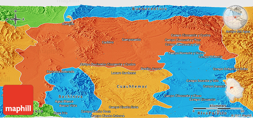 Embed the above political panoramic map of Namiquipa into your website. Enrich your blog with quality map graphics. Make the web a more beautiful place.