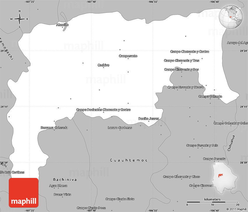 The simple gray outline map represents one of several map types and styles available. Look at Namiquipa, Chihuahua, Mexico from different perspectives.