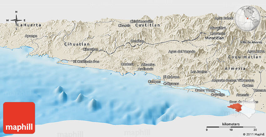 Each map style has its advantages. No map type is the best. The best is that Maphill lets you look at Manzanillo from many different perspectives.