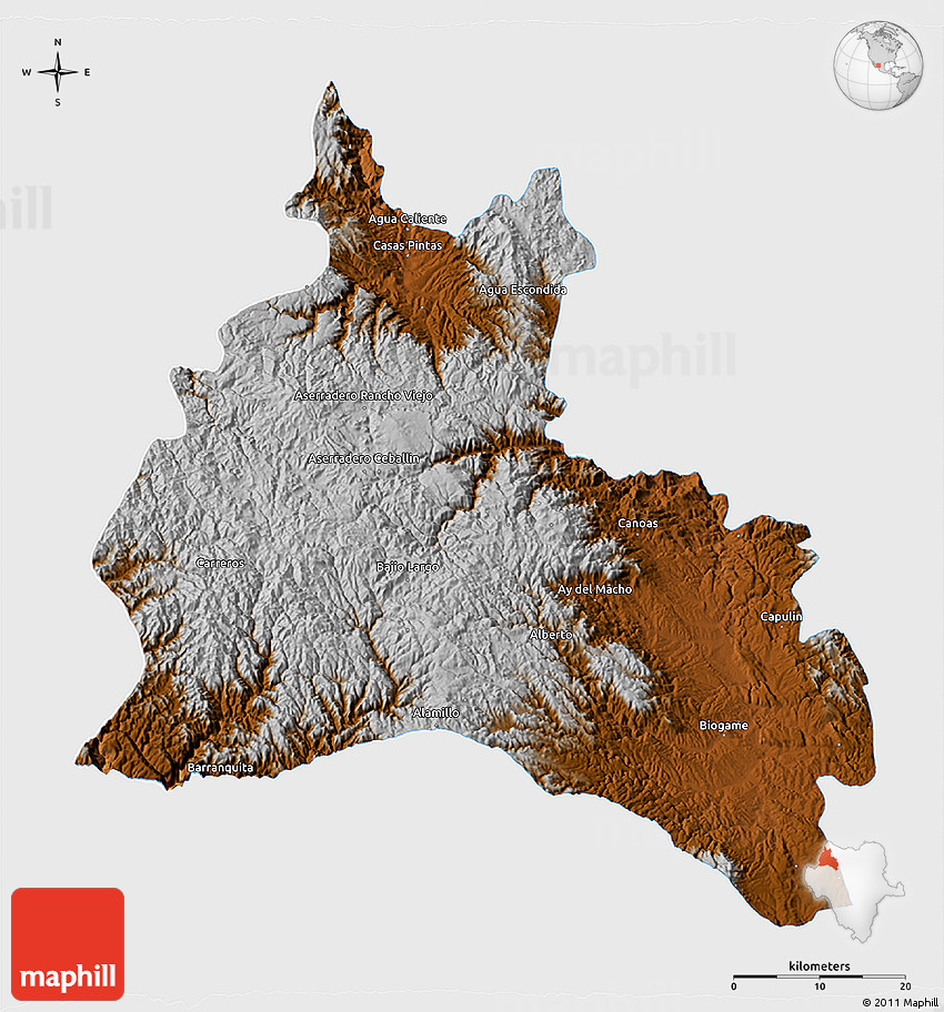 The 3D physical map represents one of several map types and styles available. Look at Guanacevi, Durango, Mexico from different perspectives.