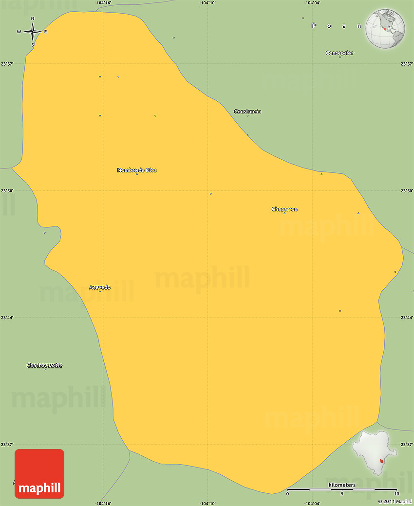 The simple savanna style outline map represents one of several map types and styles available. Look at Nombre de Dios, Durango, Mexico from different perspectives.