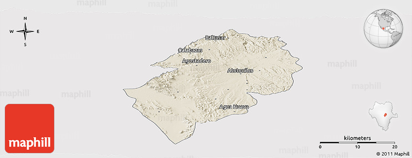 Shaded relief map shows landscape features, such as mountains, valleys and plateaus. Flat areas are smooth on the map, areas with steep slopes and mountains appear more rough. The above map of San Juan del Rio was created using a digital elevation model.