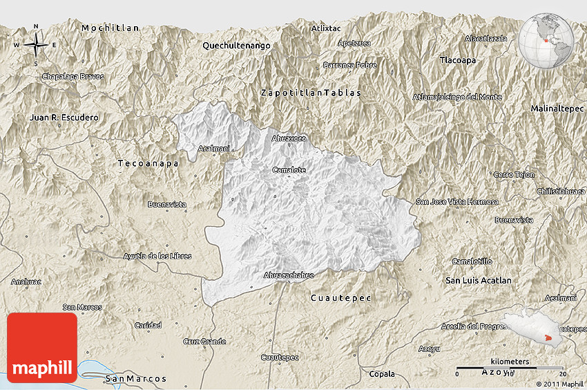 Maphill is a collection of map images. This view of Ayutla de los Libres at an angle of 60° is one of these images. Click on the Detailed button under the map for a more comprehensive map.