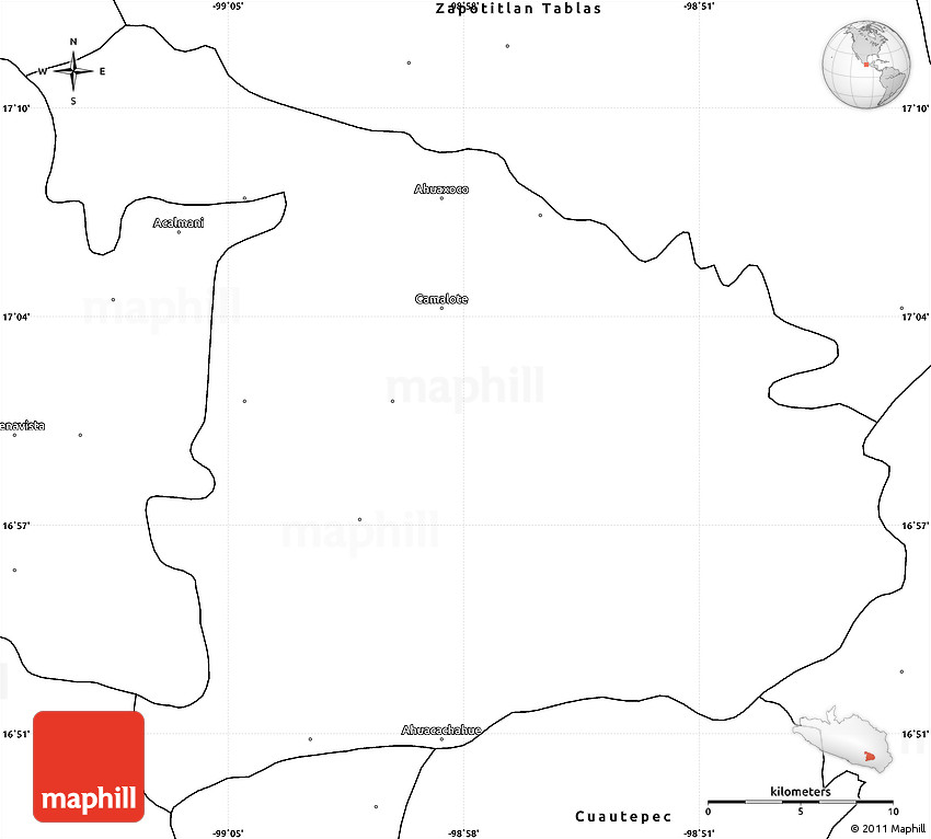 Outline maps, commonly known also as blank maps, indicate the overall shape of the country or region. Blank maps are often used for geography tests or other classroom or educational purposes. This blank map of Ayutla de los Libres allows you to include whatever information you need to show.