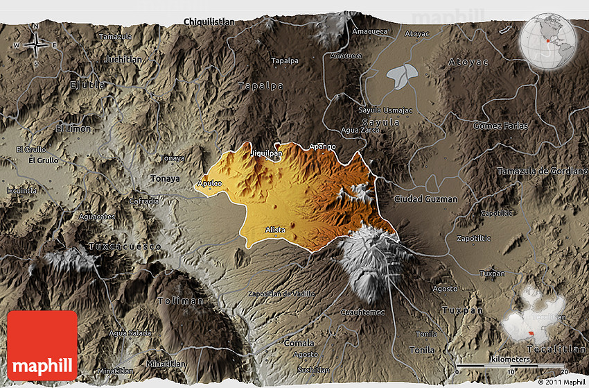 The 3D physical map represents one of several map types and styles available. Look at Ciudad Venustiano C., Jalisco, Mexico from different perspectives.