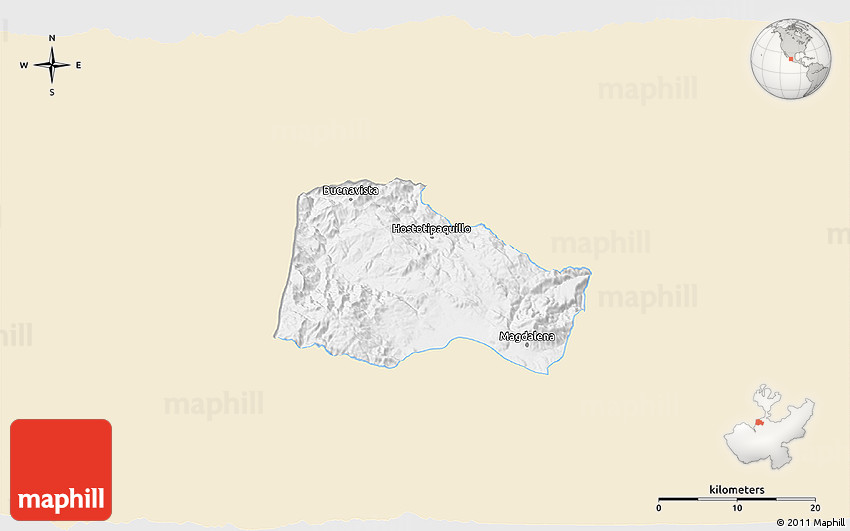 This map uses colors of vintage antique maps. Hostotipaquillo is highlighted with white. The rest of the map is beige colored shaded relief map.