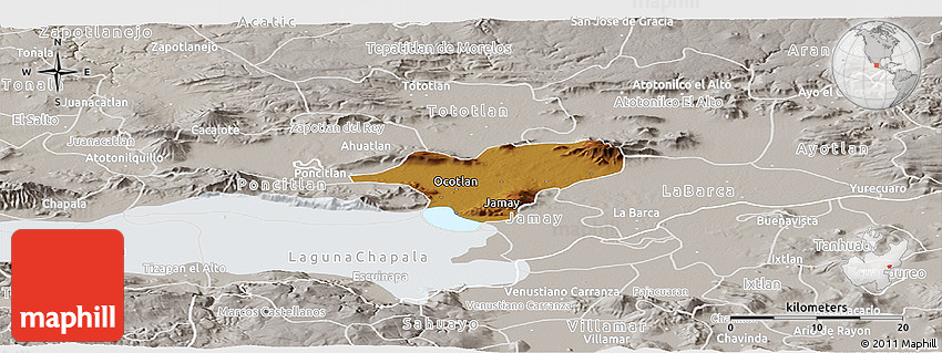 The panoramic physical map represents one of several map types and styles available. Look at Ocotlan, Jalisco, Mexico from different perspectives.