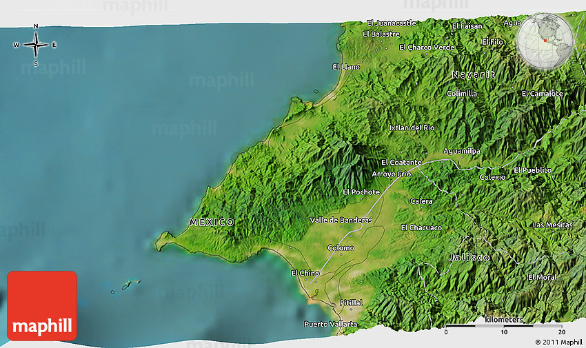 The 3D satellite map represents one of many map types and styles available. Look at La Loma, Puerto Vallarta, Jalisco, Mexico from different perspectives.