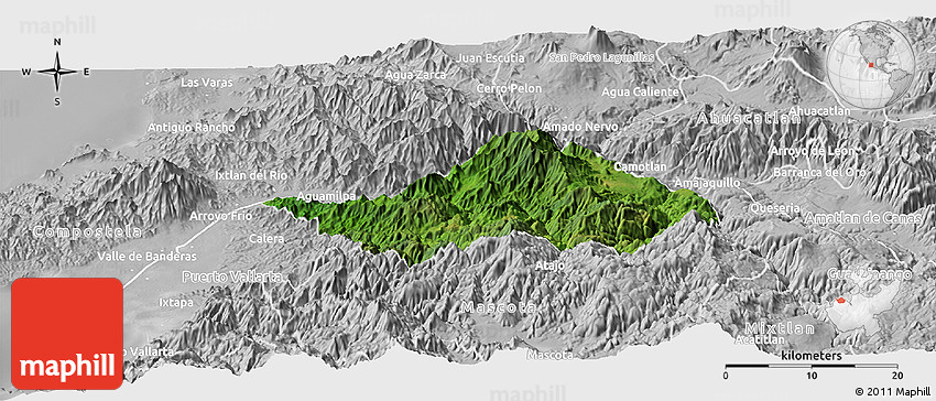 Maphill is a collection of map images. This perspective view of San Sebastian del Oeste at an angle of 30° is one of these images. Use the Detailed button under the image to switch to a detailed map.
