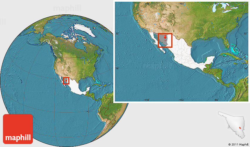 Maphill is a collection of map images. This image combines a satellite map with the globe centered on Soyopa. Use the buttons under the image to switch to different map types.