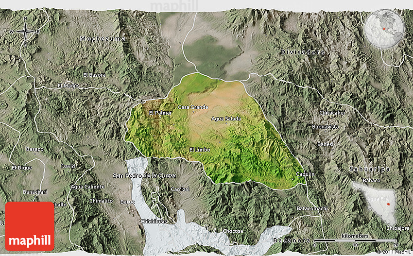 Maphill is a collection of map images. This view of Tepache at an angle of 60° is one of these images. Click on the Detailed button under the map for a more comprehensive map.