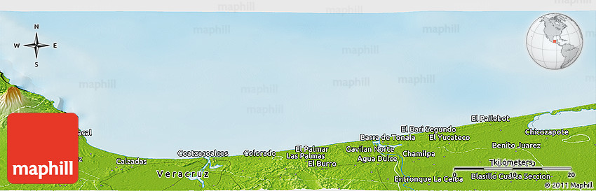 The panoramic physical map represents one of many map types and styles available. Look at La Fanga Vieja, Huimanguillo, Tabasco, Mexico from different perspectives.
