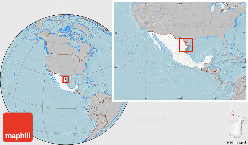 Maphill is a collection of map images. This image combines a gray map with the globe centered on Mier. Use the buttons under the image to switch to different map types.