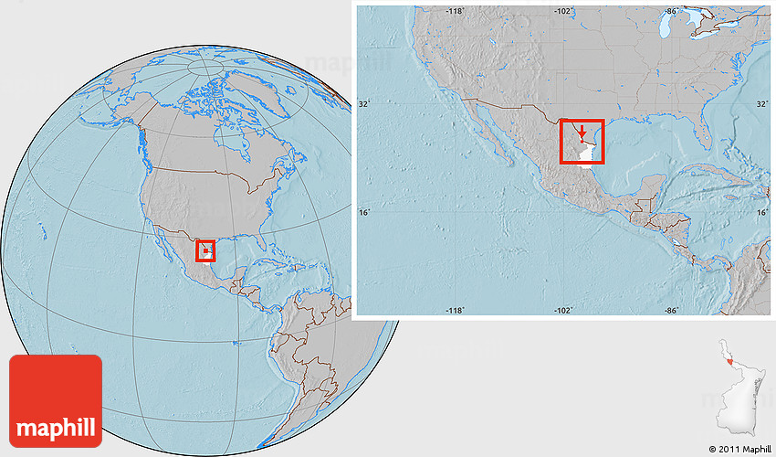 Maphill is a collection of map images. This image combines a gray map with the globe centered on Mier. Use the buttons under the image to switch to different map types.