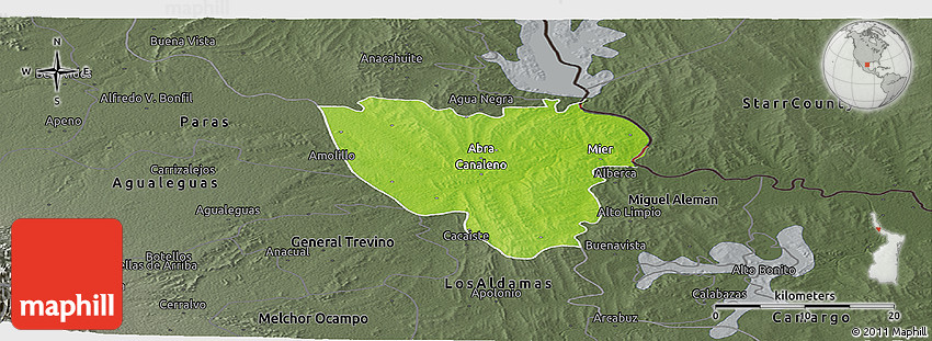 The panoramic physical map represents one of several map types and styles available. Look at Mier, Tamaulipas, Mexico from different perspectives.
