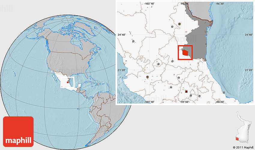 Maphill is a collection of map images. This image combines a gray map with the globe centered on Tula. Use the buttons under the image to switch to different map types.