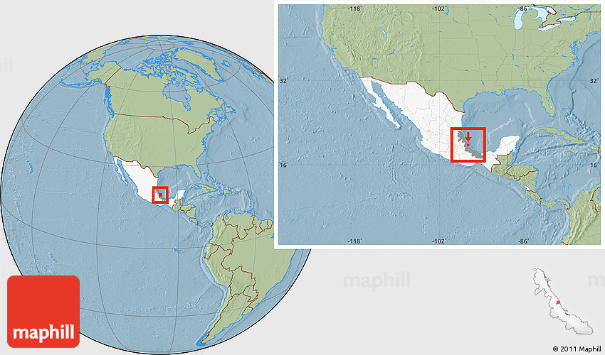 Maphill is a collection of map images. This image combines a savanna style map with the globe centered on Alto Lucero. Use the buttons under the image to switch to different map types.