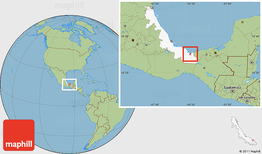 Maphill is a collection of map images. This image combines a savanna style map with the globe centered on Ixhuatlan del Sureste. Use the buttons under the image to switch to different map types.
