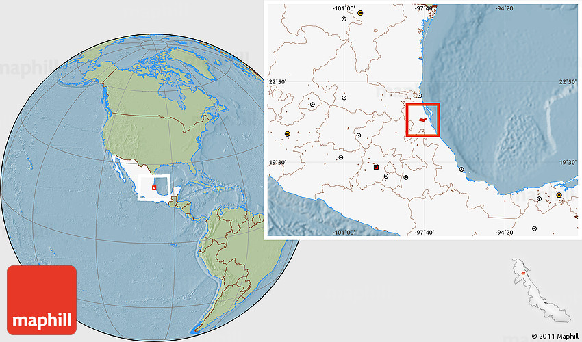 Maphill is a collection of map images. This image combines a savanna style map with the globe centered on Tancoco. Use the buttons under the image to switch to different map types.