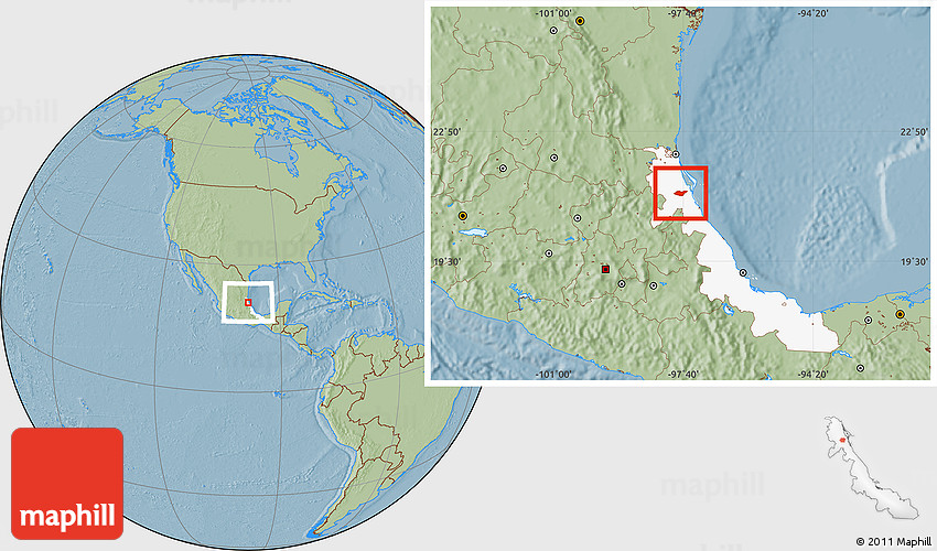 Maphill is a collection of map images. This image combines a savanna style map with the globe centered on Tancoco. Use the buttons under the image to switch to different map types.